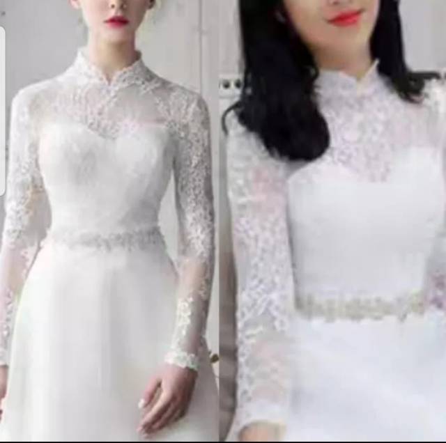 Gaun pengantin baju dress wedding hijab lengan panjang simple lace.